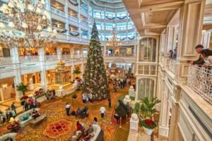 Step into the magic of Disney Resorts at Christmas—towering gingerbread displays, breathtaking decorations, dazzling trees, and festive music that transforms each resort into its own holiday storybook world.