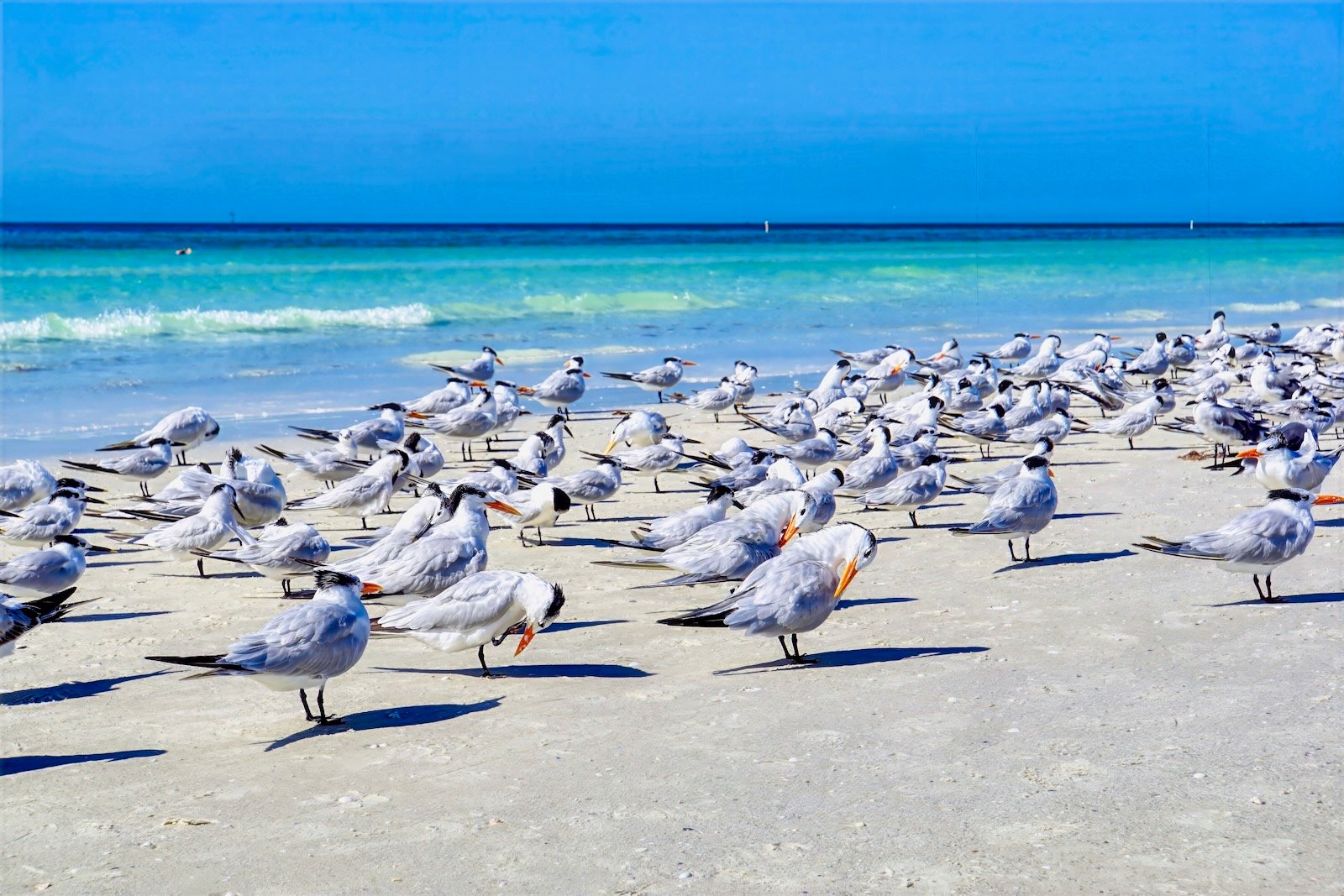 •Terns, on the other hand, are the bold personalities of the shorebird world. Quick and noisy, they don’t hesitate to swoop down and snatch a French fry right out of someone’s hand. Siesta Beach is their favorite gathering place, where they rest in large groups along the sand before suddenly bursting into flight at the first sign of disturbance.